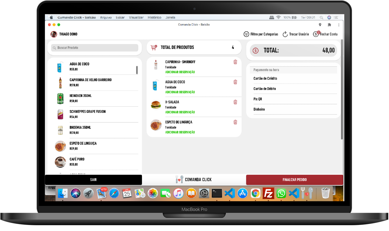 Em apenas um clique, o cliente seleciona o que vai consumir, além de poder acrescentar ou retirar itens do pedido.